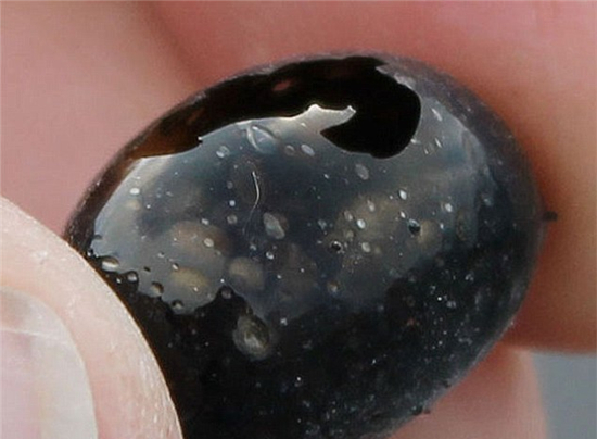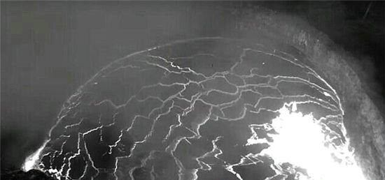 这个黑色的形似鸡蛋的物体出现在高出熔岩湖表面约360英尺的地方。这个被称为“火山泪”的物体长约半英寸,内部呈中空状。