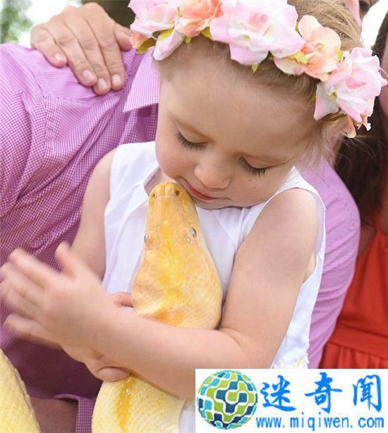英国2岁萝莉亲吻巨蟒 家人认为巨蟒友好善良