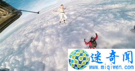 【奇闻快递】12月09日消息,日前,据英国《每日邮报》报道,现年25岁的小伙Antti Pendikaen近日完成了一次惊人壮举,在跳伞之前扔掉了属于自己的降落伞,然后赤膊上阵,还好队友给力。