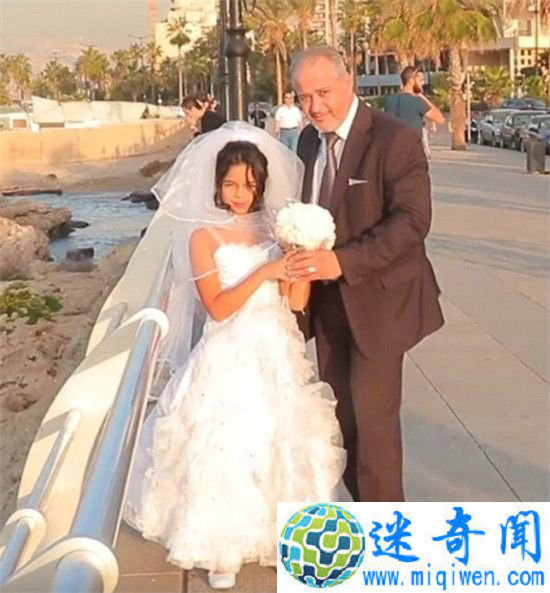 据英国《每日邮报》报道,黎巴嫩的街头惊现令人大跌眼镜的一幕一个还长着娃娃脸的12岁小女孩身着雪白的婚纱,而站在她旁边的头发花白的中年男子正是小女孩的新郎,看起来却像她的爷爷。