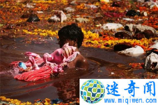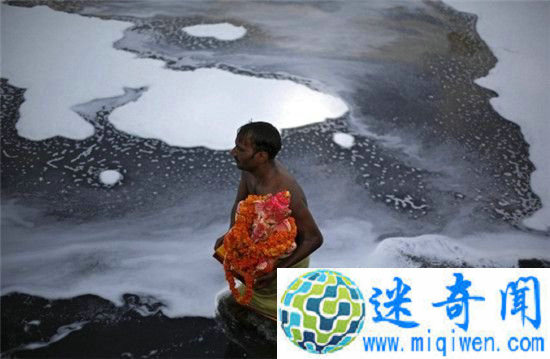 与垃圾为伴:印度人在被污染的河流内庆祝宗教节日
