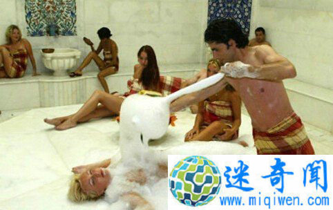 原来,信奉伊斯兰教的土耳其女子平时除了用头巾包住头和脸部外,还穿着厚实的长袍,外人无法看清女子的长相和身材,这样一来,土耳其浴室就成了未来婆婆挑选儿媳的重要场所。,未来婆婆在媒人的陪同下邀请未来儿媳一同沐浴。在浴室里,未来婆婆不仅要看儿媳的长相和身材,还要看她的骨盆,骨盆大的女子才能给家里带来多子多福的好运。,未来儿媳的体味如何,有没有狐臭也是考察的重点。由于土耳其人的饮食以奶酪和肉食为主,体味重在所难免,有狐臭的女子被认为是不吉利的,人们认为那是真主惩罚她的缘故。