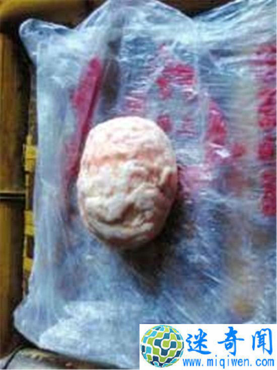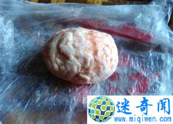 “年轻时我是杀猪匠,后来又养了这么多年猪。”42岁的李金焱说,自己还从来没见过这种东西。在冰箱里放了两天后,心中的谜团一直没有解开,他干脆把这坨东西拿出来,用刀小心地剖成了两半。剖开发现,这坨肉的中间,有一团黄绿色的物体,就像是咸鸭蛋的蛋黄,而整坨东西看起来就像一个“怪蛋”。李金焱闻了闻,“怪蛋”散发出很重的腥味,隐约有股中药材的味道。
