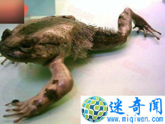 遭受威胁时,壮发蛙会把自己的骨头折断,并且将"骨爪"刺透趾垫从断裂处伸出,当成武器,就像X战警里面的金刚狼。