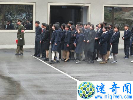朝鲜妙香山,金日成纪念馆门口,大巴上看到北朝鲜的高中生被组织来参观。衣服是统一发放的,鞋子不是,经济条件立马可见美丽的北朝鲜女导游。北朝鲜女青年喜欢男青年的条件是当过兵、机关干部、共产党员,简而言之就是思想要好。晚上基本不出去,平时的娱乐活动就是看看电影、看电视,基本不存在旅游的概念。