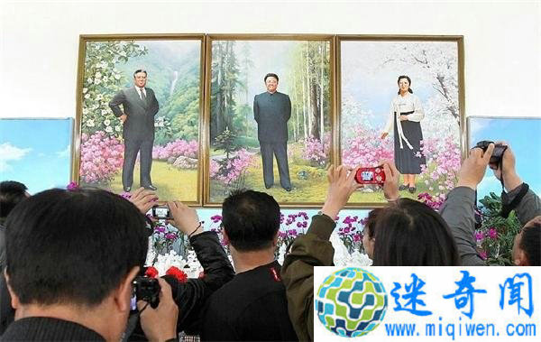 “金日成花、金正日花温室”坐落在罗先市区,一盆盆领袖之花陈设于高高的案台上。温室中心的墙壁上悬挂着金日成、金正日和金正日的母亲巨幅画像(左至右),而游客拍照时一定要将画像中的人物拍摄全、无遮挡,否则出口岸检查时会惹来麻烦。