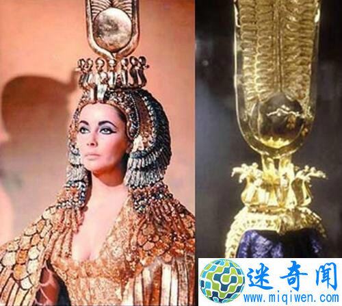尽管一些浮雕和绘画描述了埃及艳后的皇后们戴着类似的帽子,无法确认克利奥帕特拉戴过这种王冠。这个王冠上装饰有埃及人崇敬的动物形象。在重大的仪式中,法老王一般戴着代表上埃及的白色王冠和代表下埃及的红色王冠组成的双层王冠。