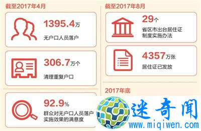 公安部介绍,党的十八大以来,我国累计已有1395.4万无户口人员解决了落户问题,无户口人员参与社会事务、享受基本公共服务的权利进一步得到保障。公安部治安局有关负责人表示,力争在2至3年内彻底解决无户口人员落户问题。