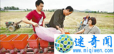 5月29日,在河南省南阳市唐河县黑龙镇大朱庄村,农民在给播种机添加种子。目前,唐河县农民利用有利的天气条件,抢抓农时,播种花生、玉米等农作物。(记者 冯大鹏 摄)