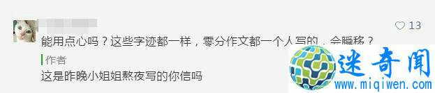 在这样的规则下,作文得零分不容易,阅卷老师在紧张的阅卷环境下将所谓“零分作文”拿出来更不容易。所以众多“高考零分作文”在高考刚结束甚至还未结束的时候就大量出现,显然不合常理。开头提到的《2018年高考零分作文新鲜出炉,你们来感受下》的微信文章,作者在回复网友留言时写道“这是昨晚小姐姐熬夜写的你信吗”。
