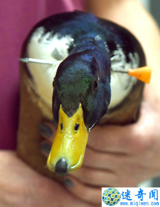 奇迹!德国一绿头鸭被飞镖穿喉仍顽强存活