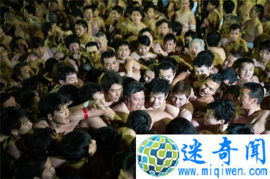 当地时间2016年2月20日,日本冈山,日本庆祝传统节日“祭”,9千人裸身肉搏抢神木画面惊呆网友。