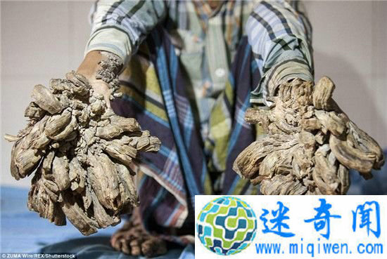 他患此病已经长达7年,期间手和脚陆续长出了像树根一样的疣状增生。