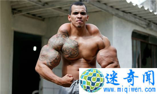 2015年媒体评选的最不可思议的15张新闻照片,排名第一的就是这张照片。照片主人公是来自巴西的25岁Romario Dos Santos把几种油、止疼药和酒精的混合物注入手臂肌肉,获得了惊人的效果。