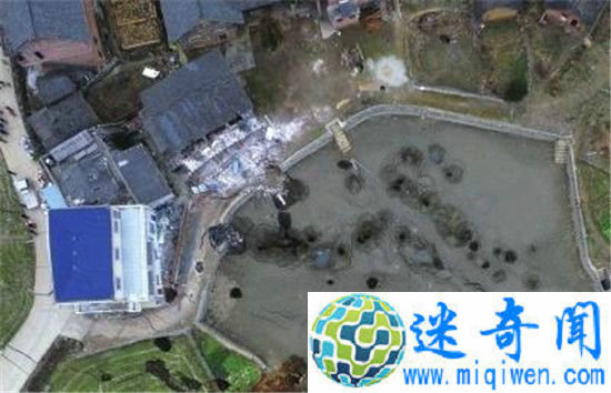 没有人知道发生了什么,谁也不敢下去抢救消失的鱼。仅过了不到1小时,5亩地的鱼塘干涸,一滴水都不剩,只有七八条小鱼躺在那儿鼓腮、打挺。池底显现出四五处“天坑”般的洞口,最大的直径超过10米,最深的根本看不到底。村民们愣在原地,只能看着鱼慢慢干死,没人敢下去一探究竟。