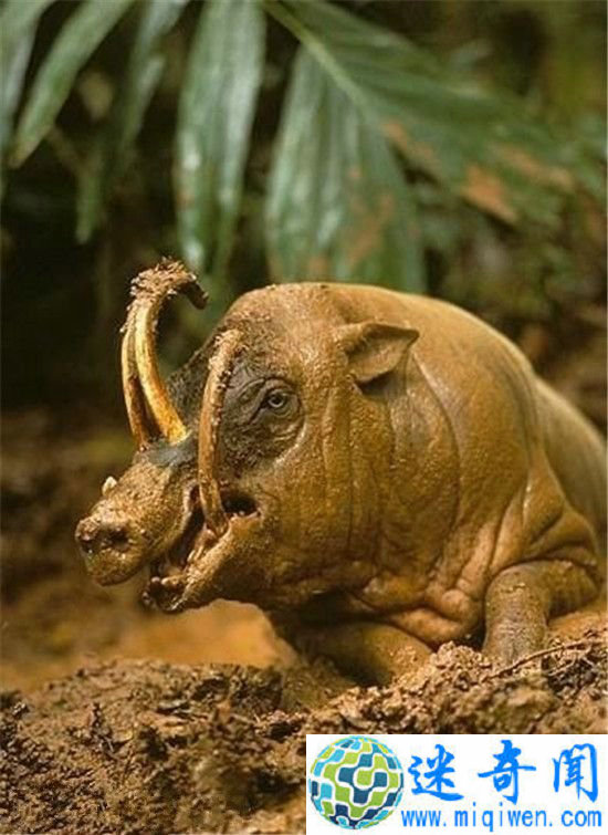 【鹿豚】 鹿豚是印尼苏拉威西岛上的传奇生物并不奇怪,因为岛上居民是在这种动物的启发下,产生了很多奇闻轶事和像恶魔的面具。鹿豚在树上磨尖它们的牙齿,并在冲突期间用尖牙攻击对手。