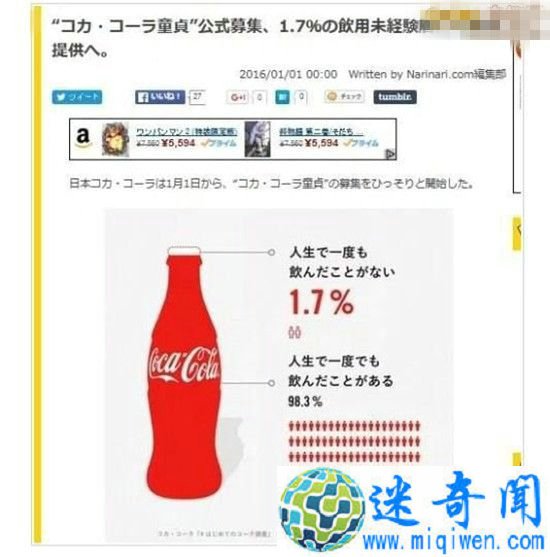 如果说到饮料的话,大家会想到什么样的品牌和名字呢?恐怕提名可口可乐的人绝对不会在少数吧?而在日本,当地的可口可乐公司却在进行一项“让没有喝过可口可乐的人‘破处’”的企划。