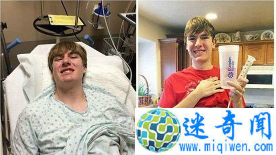 19岁的阿历克斯·维凯斯来自美国犹他州,刚刚从高中毕业的他看似与常人无异,但他得了一种怪异的过敏症。阿历克斯对食物中的蛋白过敏,导致他无法吃任何食物,不得不依靠插在胃上的流食管道生活。
