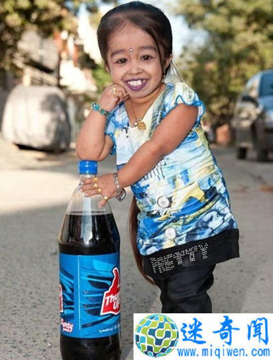 乔蒂是印度人,是目前在世的世界上最矮小的女人。已被吉尼斯记录,她的身高62.8厘米。乔蒂患有软骨发育不全症,这种病五十至一百万人之中才出现一例。