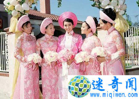 在越南访问时,参加过越南人的婚礼,了解了越南人的奇特婚俗一是“初夜”“谢恩”婚俗。在越南北部蛮族的一些部落中,结婚时有一种让旧情人先占“初夜”的“谢恩”婚俗。一个新娘在婚前,往往有旧的情郎。如果确定与一个人订婚,就要同其他情人断绝关系。按传统习俗,新婚之夜新娘并不住在新郎的洞房里,而是去找旧情人共枕一夜,以示“谢恩”。从此之后,也就与旧情郎断绝一切来往,完全忠于自己的丈夫,不会再有其它的不轨行为了。